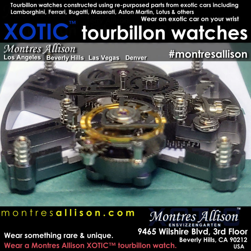 The publicly traded company helped fund the design and production of the first Montres Allison watches. Those first Montres Allison watches were produced in very limited quantities and were overpriced for the movements they contained and their country of origin. However, Terry decided to only produce very limited edition and custom watches with precious metal cases beginning in 2004.