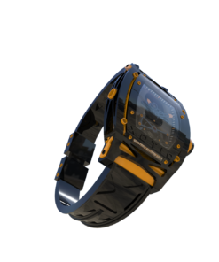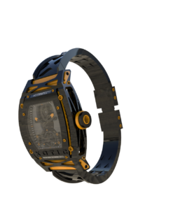 Comprised of re-purposed components from exotic cars. Each watch comes with a Passport book which details the source of the material for a particular component. For example, if the caseback is made from a Lamborghini Aventador carbon fiber hood, it is indicated in the Passport book.